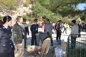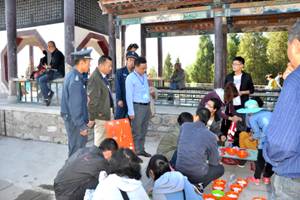 为贯彻落实学校校园综合治理专项整治活动,进一步加强文明和谐平安校园建设,根据白培康副校长关于二龙山整治活动的指示,以清理二龙山违规摆摊经营为重点,开展了集中整治行动,2013年10月2日上午9时许,安全保卫部(处)协同后勤服务集团共10余人,在安全保卫部(处)吴耀金副处长的带领下,对二龙山违规摆摊经营人员进行说服教育,予以清理,并提出相关政策和具体要求。