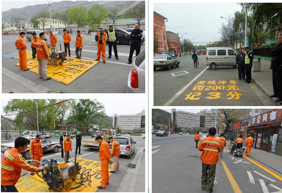 为了解决校门口的安全隐患,4月5日,安全保卫部(处)向太原市交警支队尖草坪区一大队提出书面申请,拟在我校1号门外大路上规划施划黄色禁止停车标线的区域,请求交警部门予以协助。经多方沟通和努力争取,4月19日上午,太原市交警支队尖草坪一大队一行5人,在我校1号门前规划黄色禁止停车标线,范围从学校一号门至上兰村五岔口大约300米。经过三个多小时紧张施工,施划任务全部完成。