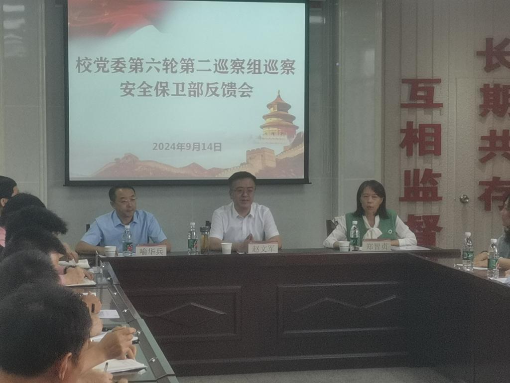 9月14日上午11时,中北大学第六轮巡察第二巡察组在德怀楼6层会议室召开了巡察反馈会。校党委副书记、巡察工作领导小组常务副组长赵文军、巡察工作办公室主任、校纪委副书记郑智贞、第二巡察组组长喻华兵出席会议,参会的还有巡察办全体人员、第二巡察组全体成员、安全保卫部全体成员,会议由郑智贞主持。